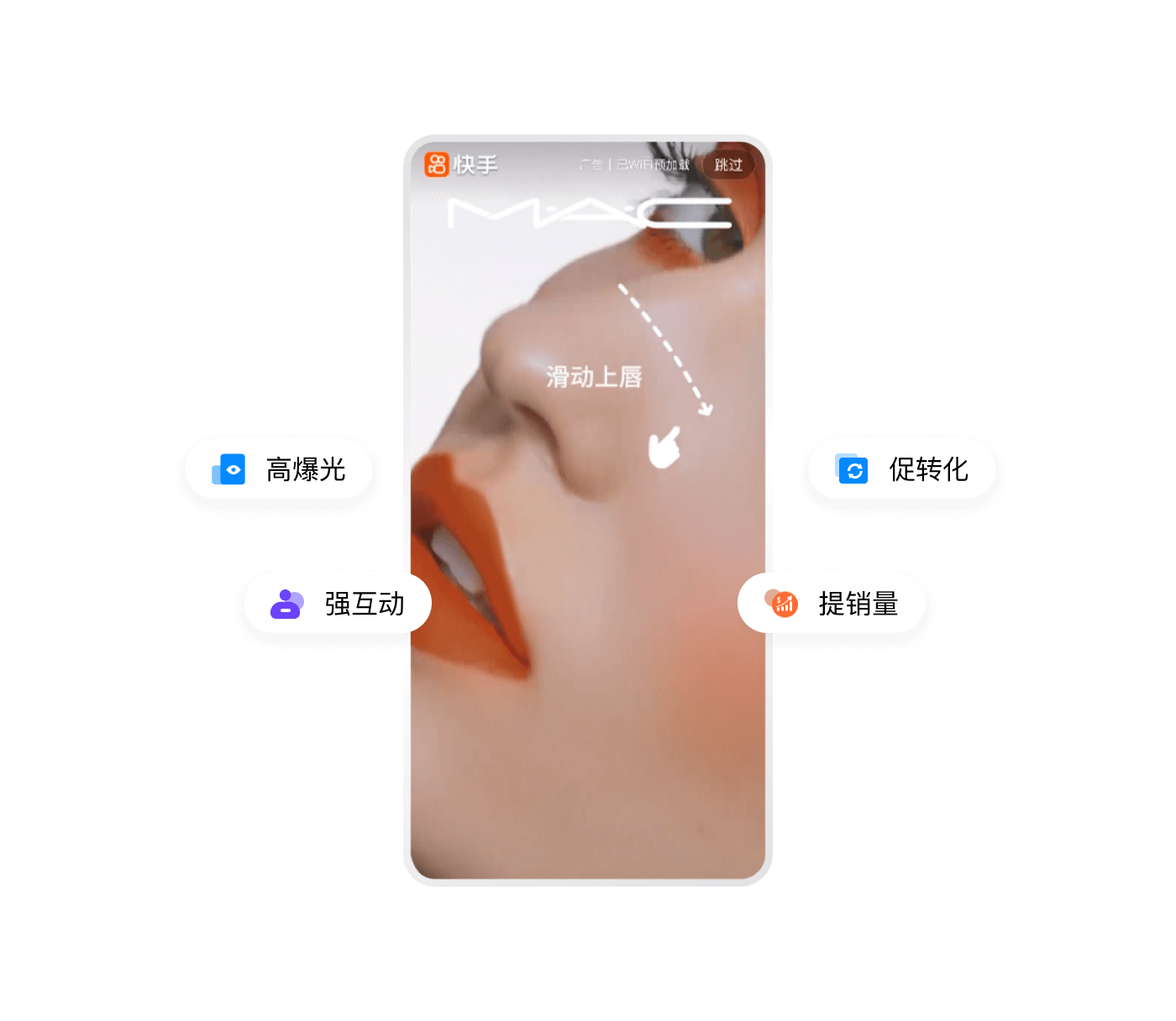 原生視頻內容展現,基于社交沉淀驅動(dòng)用戶(hù)裂變轉化,快手后 臺一站式操作,投放高效便捷