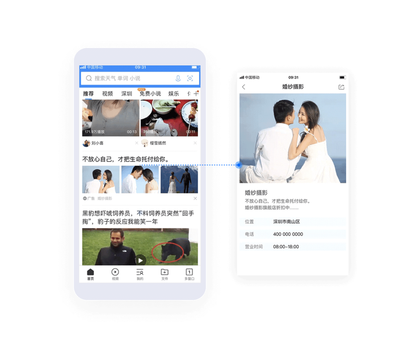信息流廣告:瀏覽器作為內容消費入口,有著(zhù)優(yōu)質(zhì)的信息流原 生展示環(huán)境。廣告自然融入資訊情境,高效傳達品牌信息。支 持圖文、視頻、全景和本地等展示樣式。
