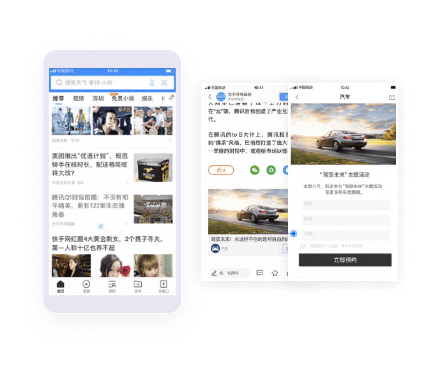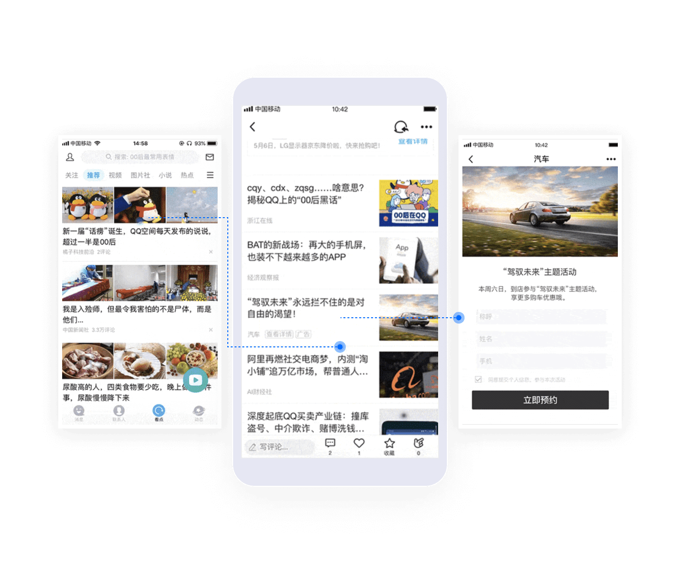 聚合QQ瀏覽器、QQ看點(diǎn)、天天快報等海量信息流資源平臺。多元場(chǎng)景下精準觸達用戶(hù)。