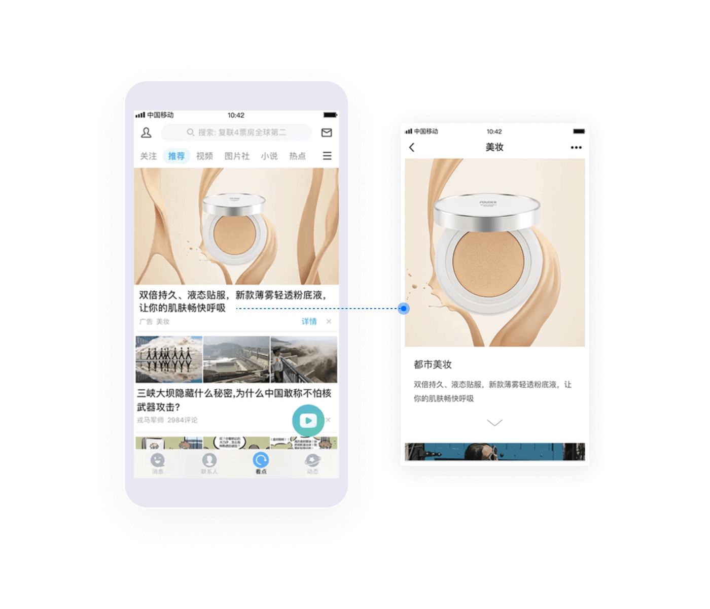 信息流廣告:優(yōu)質(zhì)的信息流原生展示環(huán)境,廣告自然融入資訊 情境,高效傳達品牌信息。