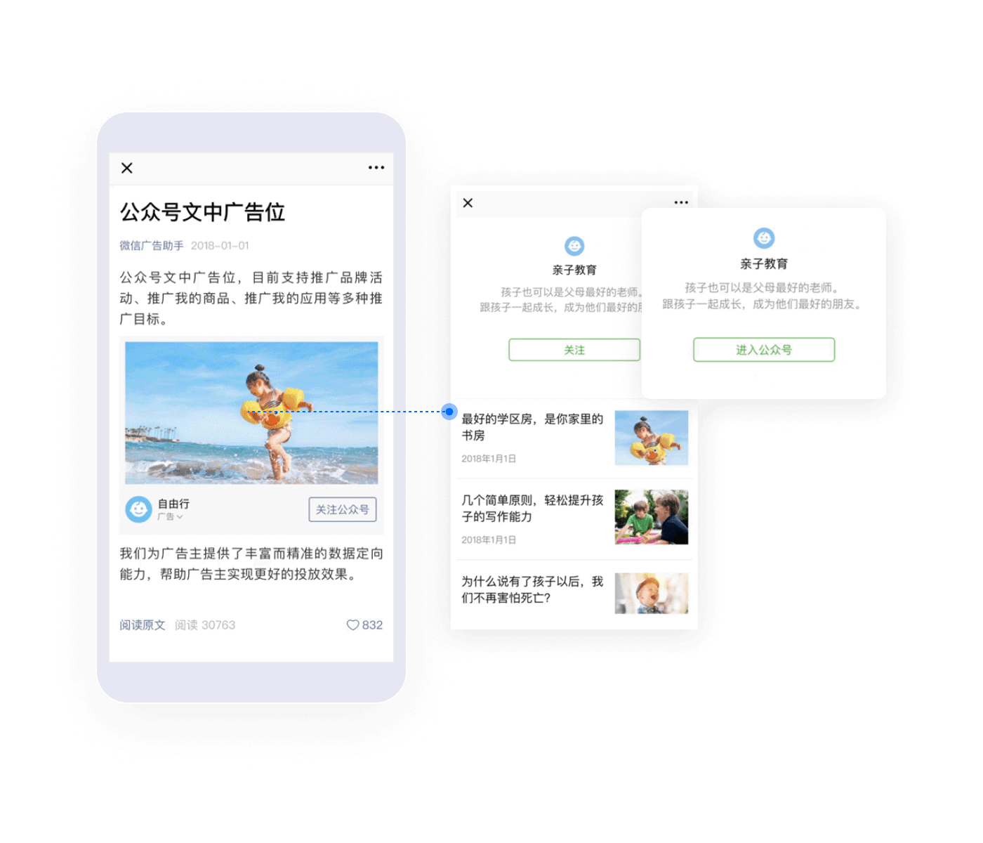 是基于微信公眾平臺生態(tài),以類(lèi)似公眾號文章內容的形式在包括文章底部、文章中部、互選廣告和視頻貼片等四個(gè)廣告資源位進(jìn)行展示的內容廣告。